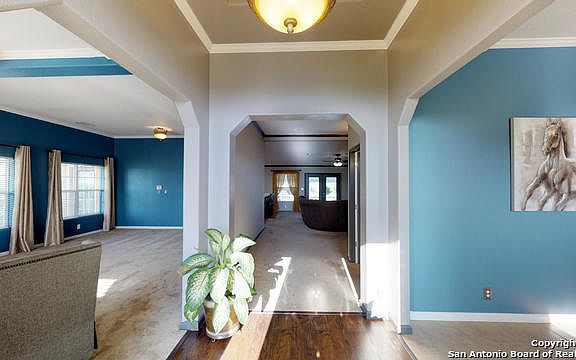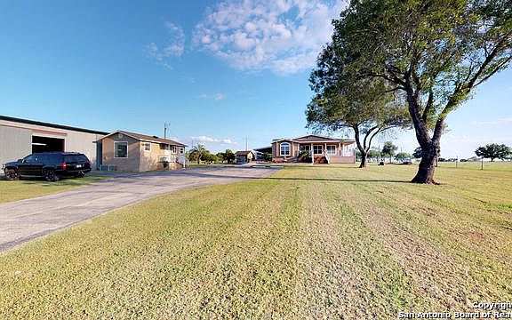 Awesome Ranch living at its best. Beautiful Modular Home on Slab with awesome views; 27.5 Acres, with a pool and pool house, large barn and attached workshop, detached guest house with studio, one bedroom/bathroom. Electric gate entrance with asphalt driveway, livestock barn, 2 ponds, awesome floor plan that features a custom kitchen with gas cooking, custom master bedroom with jetted tub and separate shower, oversized covered back porch that connects to the pool area, solar panels, and brand new roof.