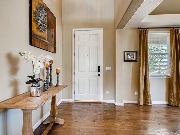 Stunning home in a cul-de-sac that backs to open space! As you walk in the front door you are greeted by beautiful wide plank hardwood floors throughout most of the main level, tons of natural light, and vaulted ceilings. Beautiful gourmet kitchen has slab granite countertops and stainless steel appliances, including double ovens, gas cooktop, microwave and dishwasher. Tasteful glass tile backsplash is also featured in the butler's pantry that has glass front cabinets and convenient wine fridge. It is open to the living room with great views of the open space, and easy access to the covered patio for BBQ's. Main floor bedroom/study has an adjacent full bath. Upstairs master suite with five-piece bath that has tile floors and granite countertops, plus walk in closet with system. Two bedrooms share a full hall bath, and the fourth bedroom is a guest suite with private 3/4 bath. Builder finished basement boasts a large rec area, additional bedroom and full bathroom plus large media room. Relax on the covered deck and enjoy the tranquil backyard. This is a well cared for home in a great neighborhood that is move-in ready!