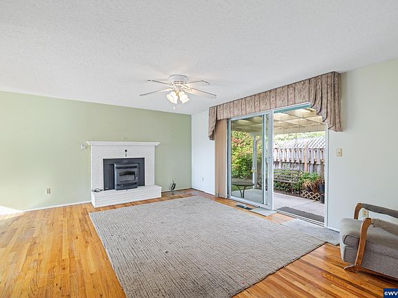 55+ Golf Resort Living in the Beautiful Willamette Valley, Woodburn Senior Estates & Golf. 2 Bed, 1 Bath, Hardwoods Throughout & Gas Fireplace. Charming kitchen with BI Dishwasher, FS Stove, Fridge, and BI Microwave. Beautifully landscaped large side yard.
