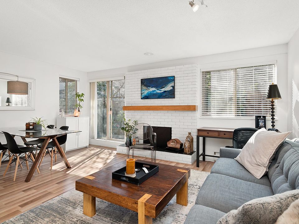 Live North of 4th, welcome to Westvale! With all the features to make your time at home special. A wood burning fireplace (can be converted to gas), bright south facing patio (749sqft) with mature flowering trees, custom wood accents throughout, spacious bedroom with walk in closet and exceptional privacy. This is truly a unique property! The building: replumbed, rainscreened, electrical copper conversion, updated common areas, elevator reserve fund, new windows and sliding doors. As solid as it gets! A community of live-in owners, pets allowed, strata approves insuite laundry and no major upcoming building work. This one's a MUST SEE. Flexible showing times throughout February 1st to 3rd and OPEN HOUSE on both Saturday and Sunday (4th/5th) 1-4pm. Parking and storage included.