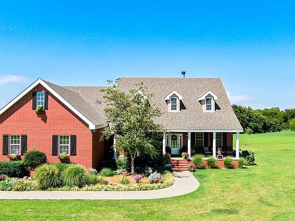 This stunning home is located on 21 acres. Featuring 4 bedrooms 4 full baths, downstairs master, formal dining, office, large living room & high ceilings make this floor plan airy & dreamy. A view of the land from almost every room allows for beautiful natural lighting, & the architectural detail is spectacular. Built in 2006, has a stocked pond, hay meadow, 20x40 shop w/220 & 110 electric, heated interior with two garage doors & concrete floors, as well as a 32 X 12 utility shed & storm shelter.