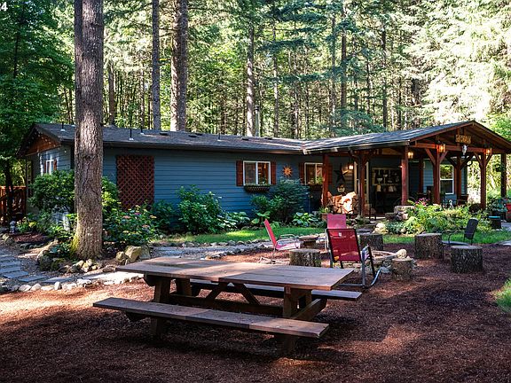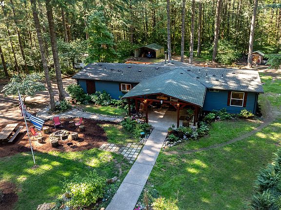 Peaceful easy living on the mountain. Spacious turnkey home nestled amongst the trees, ready for everyday living or AirBnB. 3bed/2bath ranch style pre-fab home sits on a fully fenced 1.22 Acres. Tastefully updated throughout with modern finishes. The kitchen is the place to be with open floor plan, engineered hardwoods, soap stone counters, shiplap ceiling and cedar wrapped beam. Enjoy the newer appliances, prep island, panty, custom hickory cabinets with pull-out features, specialty paint, and tile backsplash. Primary suite boasts deep walk-in closet, updated bathroom, and fixtures. Heated detached shop with 220V and carport. Covered RV/boat parking, chicken coop, and many outbuildings for storage. At the end of the day relax on the 1,250+ SQFT entertainers deck or cozy up to the wood burning fireplace. Outdoor adventures await. Play in the national forest, fish in the rivers, bike Sandy Ridge, golf at the the resort at the mountain. 20min to Mt. Hood, 40min to PDX. You will love it here!