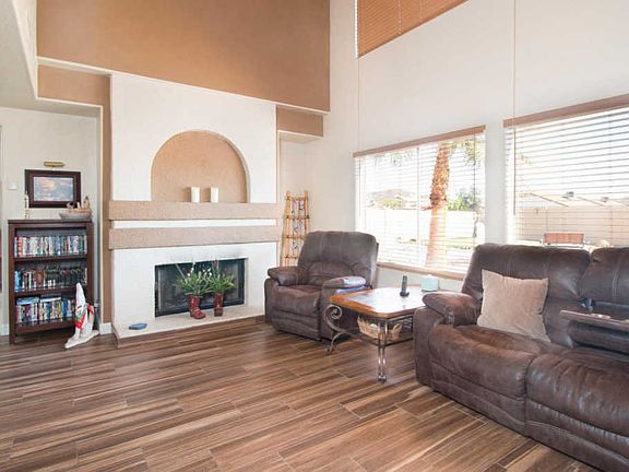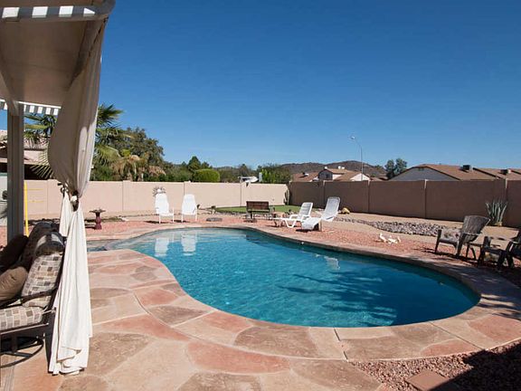 Beautifully maintained & updated by original owners, this home offers 4 bedrooms + den & 2.5 baths in 2339 SqFt. Formal living room, formal dining & separate family room w/2-story vaulted ceilings and wood-look tile floors. The remodeled kitchen has 42'' staggered maple cabinetry, granite counters, & black appliances. Sliding doors lead out to the large backyard which boasts mountain views, refreshing salt-water pool & spa, flagstone decking, & 3-hole putting green! Bedrooms are upstairs; all are generously sized & have newer carpet. The master retreat has vaulted ceilings, private bath w/dual sinks, separate tub & shower & walk-in closet. Other features include 2 car garage w/cabinets, OWNED SOLAR, sunscreens, RING doorbell, alarm system, & much more! NO HOA! See this gorgeous home today!