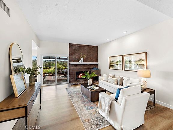 Incredible Panoramic Mountain & City Views for Miles- photos don’t do it justice! This single story Mission Viejo home is a rare find. The remodeled home has just been upgraded with all new quartz countertops, vinyl plank flooring, fresh paint, contemporary fixtures, modern doors, sleek baseboards and refinished cabinets w/ modern handles throughout. Arrive to an expansive front yard with beautiful mature trees framing the herringbone brick & stone landscaping, up to a storybook walkway and charming front door. Step inside to a wide foyer looking through to the custom built fireplace w/ new mantle and, of course, your spectacular views & private backyard seen throughout the interior and exterior. The kitchen showcases high-end stainless steel appliances including a Viking gas range & Bosch dishwasher, as well as quartz backsplash, recessed lighting and a Kohler sink/faucet. The bathrooms have both been redone with updated vanities and brand new sinks, toilets, faucets & fixtures. Wake up to stunning views from the primary bedroom featuring an en-suite bath and private patio access through the slider out to the peaceful, expansive backyard. A covered patio wraps around the entire side and back yard, ready for numerous table sets, outdoor cooking and gatherings with friends & family- all while enjoying gorgeous panoramic views of the mountains, hills, park and beautiful evening lights. The garage is finished with new epoxy flooring and offers ample storage w/ built-in cabinets, a pegboard wall and large lighted loft- everything you need for your tools and toys! The home's premium central location is walking distance to award winning schools and only 20 mins to the surf & sand of the Cali Coast. The beautiful Lake Mission Viejo also offers the ability to swim, boat, fish, paddle board, and have endless fun on the water without leaving the community. Tree-lined neighborhoods, constant community events, easy access to thriving business centers, extensive shopping, and a variety of restaurants for everyone’s taste will keep you entertained all year long. This adorable home won't last!