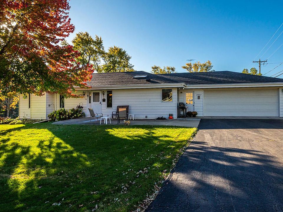 Charming Ranch Home! Featuring 2 bedrooms & 3 bathrooms, this residence offers an open floor plan that caters to both family living & entertaining guests.The kitchen boasts ample cabinet & counter space, complete w/ a convenient breakfast bar for casual dining. The kitchen flows into the dinette area, which opens up to a spacious living room. Here, you'll find a cozy gas fireplace. Master bedroom features a master bath w/ a jacuzzi tub. Spacious second bedroom is adjacent to the 2nd bathroom w/ a standup shower, ensuring comfort & privacy for family/ guests. 1st floor laundry & loads of closet space. Full unfinished basement, equipped w/a full bath, offers limitless potential to expand your living space. Entertain on spacious patio w/an awning for shade on sunny days. 2.5 car garage!