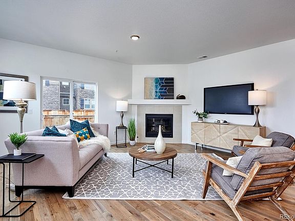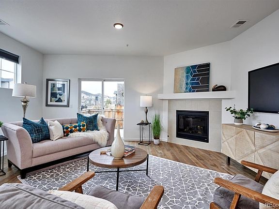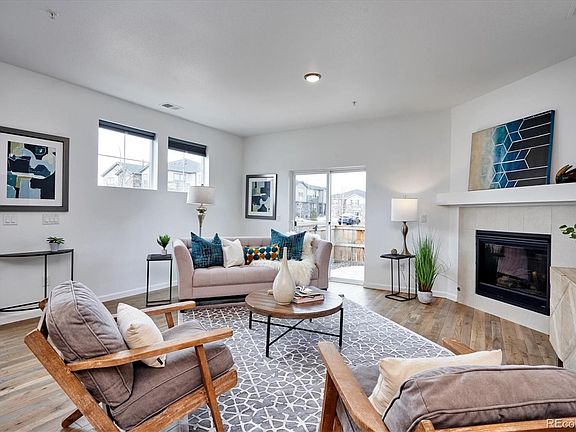 Welcome home to this like new end location townhome in the Villas at Wheatlands that backs to a greenbelt and is in move-in condition! Eye-catching curb appeal and a charming front porch welcome you into the newly updated interior that boasts new neutral paint and new carpet along with newer wood floors. The interior is flooded with natural light from the numerous windows. The open concept main floor is ideal for entertaining and daily living and is anchored by a cozy gas fireplace. A chef’s kitchen will not disappoint and has a large island with seating, a walk-in pantry, ample cabinet space, slab granite counters and stainless steel appliances including a gas range. The main floor is completed by a powder room and access to the 2-car attached garage. The second floor hosts, the primary suite with a large walk-in closet & a luxurious 5-piece bathroom. Also on the second floor are two secondary bedrooms plus a Jack and Jill bathroom with double sinks and a generous laundry area. Don’t miss the private fenced backyard that has a patio and open space views. Your new home is located in a quiet community within the esteemed Cherry Creek School District and only a few blocks away from trails, Pine Ridge Elementary & all the shopping, dining & entertainment options found at Southlands.
