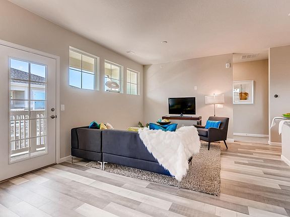 MOVE-IN READY!!! This home is 100% finished and the listing price is the total price for a quick closing. This brand-new home with large attached two car garage features a private setting and private entry with one level living on the top floor! Enjoy the large granite quartz kitchen island, spacious pantry, extensive wood flooring, white cabinets, and new stainless appliances. The huge master suite features a walk-in shower, large tub, double sink vanity, granite counter tops, and upgraded tile. This home was designed with lots of windows for natural light everywhere. The covered balcony is perfect for grilling and entertaining! Relax in the sun at the community pool or hang out with friends at the clubhouse. Shop and dine at Southlands mall which is only a quarter mile away. Cherry Creek School District!