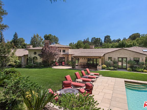 This magnificent Hidden Hills Tuscan Villa is situated on 1.2 acres of impeccably manicured grounds. A grand formal entryway welcomes you to an opulent interior which is both luxurious and inviting. A dramatic formal living room, elegant dining room, and breathtaking main living area can accommodate both lavish celebrations and day-to-day living. The gourmet chef's kitchen boasts professional grade stainless appliances, side by side refrigerator and freezer, dual dishwashers, butler's pantry, walk-in pantry, breakfast bar, and dining nook. Secluded in a private wing, the Master Suite offers soaring beamed ceilings, a large fireplace, and a spacious spa-like master bath. Additional amenities include a study loft area, billiards room, gym, temperature controlled wine room, and wet bar. A sparkling swimming pool and spa, dining patio, and outdoor summer kitchen offer an ideal space for entertaining. A circular stone driveway, separate motor court, and a four car garage.