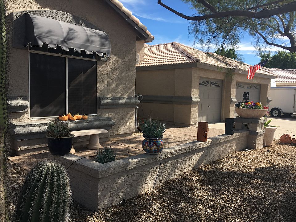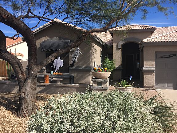 Nice size single level 4 bedroom home with 3 car garage with an RV Gate. (11,000 sq ft lot) Well cared for by the original owners. Home features updated eat-in Kitchen, granite counter tops, decor kitchen cabinets, plenty of counter space, large Island and Walk-In Pantry. Spacious Living room with formal dining. This floor plan with formal entry is great for entertaining. Outside landscape is highlighted with large covered Gazebo with built-in Bar BQ, raised planters, fountain, and pavers on back patio with walkways to grass and desert landscape. Recent exterior paint. Master bedroom with bay windows, double sinks, tub and shower. Agent related to Seller.