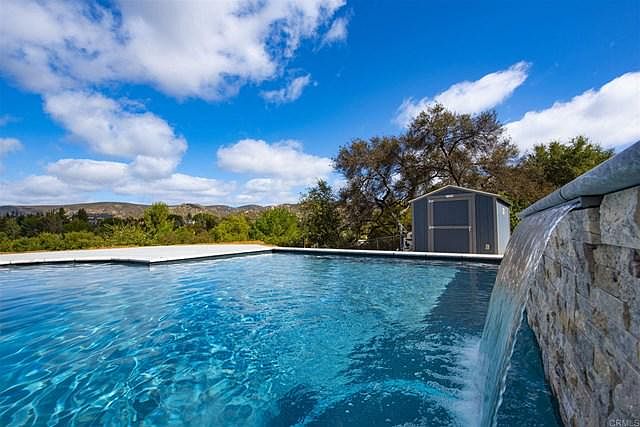 Reserve your bit of paradise. Vacation style backyard has inground pool, waterfall and baja step with spectacular mountain views. Fenced and cross fenced .69 acre with room for horses or to run and play. Expansive back deck with spa and built in BBQ for entertaining. Impressive and updated 4+ bedroom home, light and bright with vaulted ceilings, skylights and tons of windows. Luxurious master suite with double walk in closet. Large family room/game room and separate office. Walking distance to excellent elementary school, Ramona Oaks Park and Western Equestrian Center.