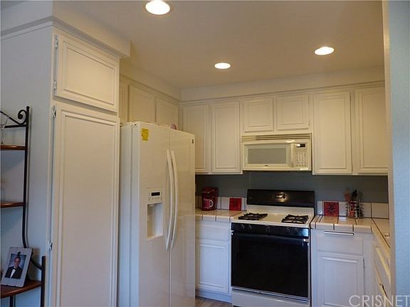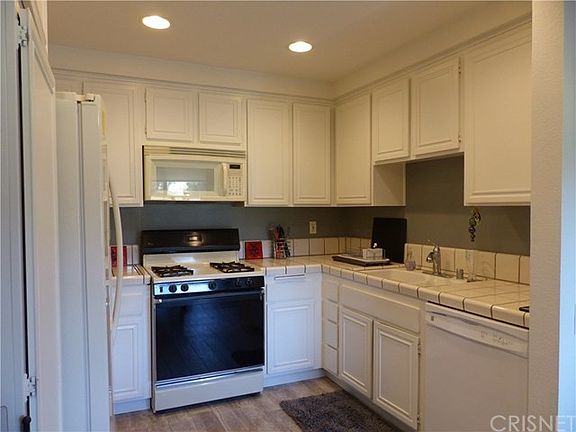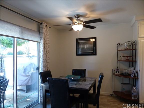 This beautiful townhome commands a superb view of Vista Valencia golf course, plus it is a desirable end unit. The many upgrades include all new flooring, both carpet and wood plank style tile in shades of grey. The recessed lighting and bright white cabinets make the kitchen a delight to cook in! The living room has a soaring vaulted ceiling with custom a blind/drape at the window. The dining area which has the sliding glass door to the patio also has custom blinds and drapes. The downstairs powder room has a custom mirror. The master bedroom is spacious with a view of the golf course. the remaining 2 bedrooms are also a good size. The bathroom is a split bathroom for the bedrooms to share with a tub/ shower combination. There is a whole house fan which is great for cooling the home on those hot summer days and saves on the air conditioning. The attached 2 car garage is also spacious with lots a great built in cabinets for all that extra storage, plus it is the home of the laundry area. The front patio leaves lots of space for outdoor dining or relaxing. There is a community pool close by, plus 2 others in the complex. In addition there are tennis courts and a children's play area. This is one of the most desirable complexes in the area as it is surrounded by lots of trees and lush green belt.