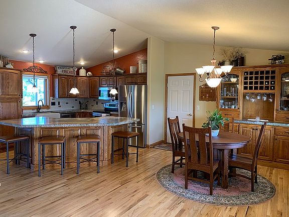 Beautiful ranch home located 4 miles south of Rapid City in The Ranch at Black Gap Subdivision. Spacious, vaulted ceilings, open floor plan, master bedroom with walk-in closet and main floor laundry. Quality built with 2X6 construction, Pella windows & doors, oak cabinets, granite countertops, hardwood floors with front and rear maintenance free covered decks to include a finished walkout basement with large sunken patio. The 5-stall heated attached garage is immaculately maintained and can be utilized to entertain as well as storing your toys and vehicles, this is a "MUST SEE". There is also an additional storage shed located on the property. This one owner home is meticulously groomed, well taken care of and has many extra details that are too numerous to mention. Please call (605) 381-8888 for viewing.