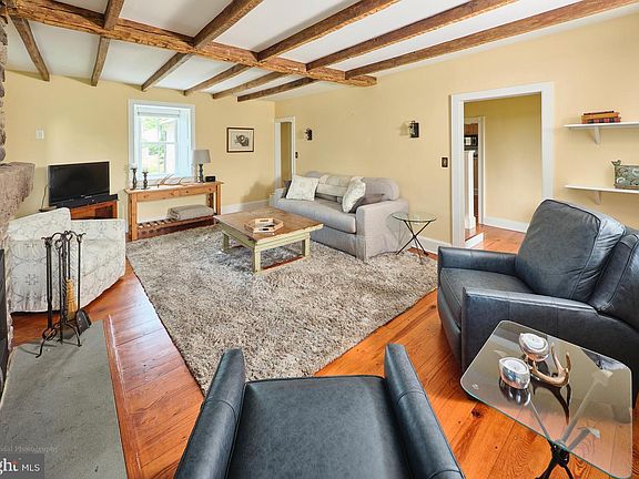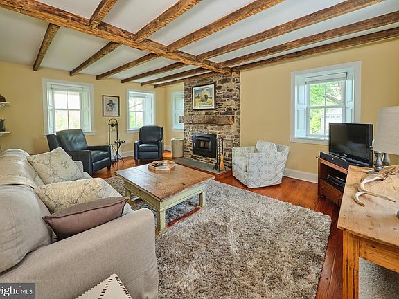 Sited at the end of a long gated driveway in the midst of 5.47 totally private, lushly landscaped acres, sits this quintessential Bucks County stone farmhouse. Hidden Fields Farms original character and charm have been thoughtfully restored while incorporating handsome modern amenities. Beamed ceilings, spacious light filled rooms, neutral color palette, and pristine wide plank floors throughout create an inviting country home. The refreshingly designed floor plan lends itself to both a traditional decor and a modern sensibility. Connect with nature in one of the many outdoor living spaces. This property has a whole house generator, detached two car garage, a studio/workshop, and outbuilding for extra storage.
