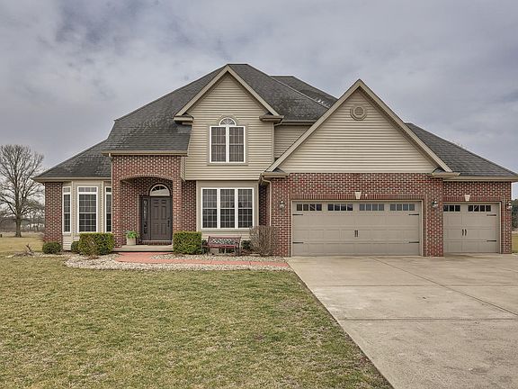 Beautiful home located in a country subdivision in Mahomet school district! Formal foyer with a gorgeous open angled staircase, loads of hardwood flooring throughout the main floor, spacious 9 ft. ceilings, archways, formal living & dining with columns, separate home office with French doors. The eat-in kitchen is a dream and boasts cherry cabinetry, stainless steel appliances, center-island & views of the 1.18-acre yard with patio. Family room with gas-log fireplace. The spacious second-floor master features 2 walk-in closets and a private bath with double sinks. Laundry room conveniently located on the upper level along with three additional bedrooms and a full bath. The full unfinished basement is perfect for future expansion!