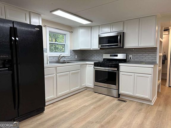 In the country south of Villa Rica; this is a 1.17+/- acre lot not in a Sub-Division. A total renovation of a 1982 Doublewide MH. Titles have been retired and this home has a solid foundation. The property is in excellent condition and has recent renovations such as new windows; new HVAC, 4 yr. old roof; vinyl siding; kitchen cabinets; full bathroom renovations; new flooring and subflooring; new gas stove and new microwave; new water heater and new rear deck and front porch railing. This is a 2 Bedroom and 2 full bath home with a large living room/ dining room area open to the kitchen. Located at the end of a dead end street. Very nice!