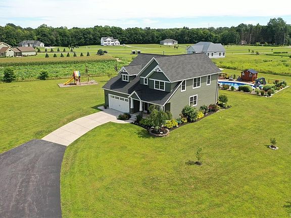 Perfection at its finest. ATTENTION TO DETAIL in this gorgeous 5 BR home on 3.5 manicured acres. Kitchen w/ quiet close Cherry cabinets, stainless steel appliances, farm sink ,subway tile back splash ,granite counters, Island, Pantry, LR & DR with bamboo flooring, Anderson windows, Master bath with soaking tub, custom solid wood doors, Finished basement to perfection. 2 yr old salt water heated in ground pool, pool house, chicken coop, fire pit, shed, camping area and so much more.....***swing set is excluded*** open house Sat and Sun 9/19-9/20 from 1-3
