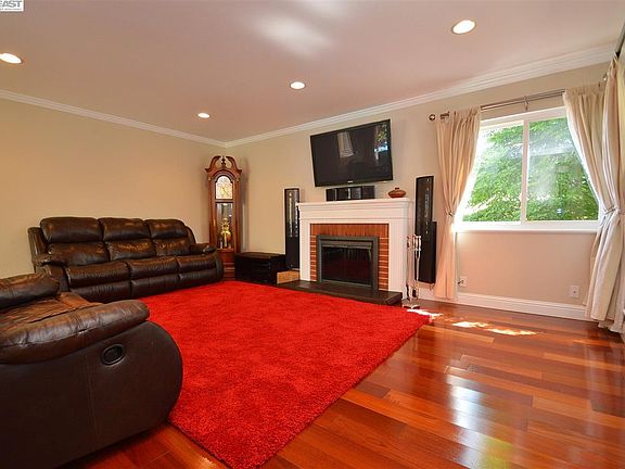 Escape to your own private retreat in this beautifully updated home with all the modern conveniences. Gorgeous Brazilian Cherry wood floors, recessed lighting, crown molding, hardwired Ethernet home network and surround sound. Cooking will be a pleasure in the modern kitchen with granite counters, newer, slow-close cabinets, dual fuel stove, pot filler faucet, hot water dispenser and stainless appliances. Additional features include built in closet storage, drive thru garage, front loading washer and dryer, expanded driveway and much more! Relax in the oversized backyard overlooking open, green parkland with no rear neighbors. Outdoor speakers, large, covered patio make this a perfect space for entertaining a large crowd or enjoying the peace and serenity of lovely rolling hills. Great commute location, close to BART, freeways and award winning Castro Valley schools.