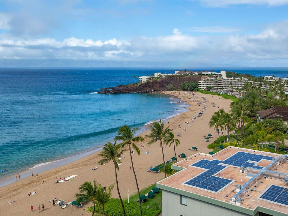 The perfect Penthouse, ready to go. Spectacular views of the Ocean, Kaanapali Beach, Molokai , the West Maui Mountains and Whales in season is a perfect 1-Bedroom, 2-Bath penthouse location with lots of natural light at the top of Tower I, just steps off Ka'anapali Beach. The floor to ceiling sliding glass doors walk out from the Living area and the large luxury bedroom suite, to a large lanai. Highly upgraded with solid wood cabinets, granite counter tops, wood style and carpeted flooring and high end appliances. Fine quality furnishings, lanai furniture, bedding, fixtures, accessories and central air. Convenient access to the beautiful white sands of Kaanapali Beach, shopping and dining at Whaler's Village next door, and the world renowned golf courses across the street. Enjoy superb resort amenities including a beachfront pool and jacuzzi situated along the famed Kaanapali Beach boardwalk, stylish day spa/salon, sauna, gym, a business hub center, concierge service, 24hr front desk, new tennis courts, gated entry, covered parking world class dining and shopping. Maintenance fees include all utilities, e.g. electric, central A/C, solar voltaic, water, sewer, trash, wi-fi access, cable TV, local phone service, storm, flood & general liability insurance, on-site security and a contribution to the Capital Reserve for components of the building, i.e. roof, lot, painting, pool, spa, etc. This property is being offered furnished however personal items are excluded. Buyer to Cooperate in 1031 Exchange.