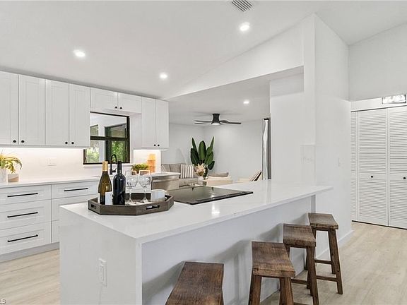 Exquisite luxury living awaits you. Nestled in Kings Lake, this stunning home offers an unparalleled blend of elegance, comfort, and modern sophistication. This home is fully remodeled (all permitted and closed through Collier County) with the utmost attention to detail and is truly ready to be enjoyed. The chef-inspired gourmet kitchen features slow-close, white shaker-style cabinetry and quartz countertops with matching quartz backsplash and brand-new stainless-steel appliances. The bathrooms have floor to ceiling tile, custom niches, new vanities, toilets, and glass enclosures. There is ample space for a future pool. The community has walking and biking paths, a community lake with one-mile sidewalk surrounding and tennis/pickleball. Located less than four miles from 5th Ave and the Naples Beaches! Low fees (HOA is $434/year) and the home is located near everyday conveniences such as Publix, CVS, Walgreens, dining, shopping, beaches, etc.