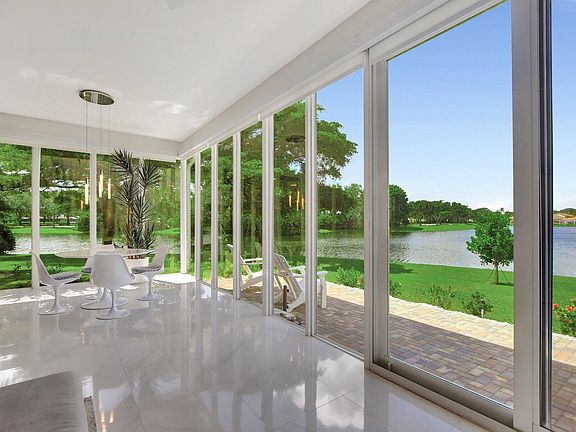 Spectacular contemporary condo features cinematic water views. This fully renovated 3 bed, 2.5 bath, 2,300 square foot condo is equal parts relaxation and retreat. Step inside to experience a world-class, chef-worthy kitchen, updated bedrooms and bathrooms, and living areas that harmonize with the natural setting. The beautiful floor-to-ceiling windows bathe the interiors in natural light, highlighting the ultra-luxe floors and an open, versatile airy design. This one-of-a-kind, unique condo has two outdoor patios. The richest and most luxurious materials come together seamlessly on a scale comparable only to the world's finest hotels. This condo is a true wonder and there's nothing else like it - especially the panoramic water views! The unit is situated in the heart of Broken Sound Club Entire home has impact windows ad doors. Was totally redesigned and renovated to studs. All custom cabinetry in kitchen, bathrooms, walk up bar, office and fireplace area. The custom created stone wall houses a dimplex FP as well as creating a separate living area and sitting /reading area. all surrounded by floor to ceiling impact windows and spectacular lake as well as golf course views. Walk outside your sliders to your own personal "Central Park" . End unit makes it totally private. don't even need to close your remote control shades. Spectacular sunsets and wildlife viewing. The only sounds you hear are those of Floridas beautiful birds; egrets, herons, pelicans... Will lift your spirits and soothe your soul. 2 AC's 5 ton Rheem 2020 and mini split 2023. large hot water heater with booster 2020. All stainless GE Monogram or Profile appliances.