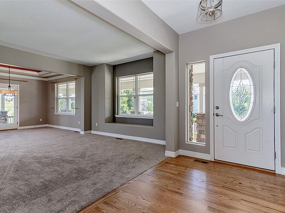 Spectacular golf course views surround this 5 bedroom, 4 bathroom home, with 3 car south facing tandem garage. So many upgrades to list! All new interior 2 tone paint, carpet, and refinished wood floors. Kitchen features white cabinetry, large island, granite slab counters, stainless appliances, and large pantry. Access to trex deck and backyard off kitchen. Dining room w/French doors to wrap around front deck. Main floor bedroom and ¾ remodeled bathroom. Upstairs features 4 bedrooms, including 1 guest room w/en-suite bath. Master Bedroom features Separate sitting area, huge walk-in closet, and large 5 piece remodeled bathroom. How awesome is upstairs laundry- washer/dryer included! Unfinished walk-out basement w/rough in. Steps to Red Hawk Ridge Golf Course, minutes to shopping, schools, highways...outlet malls!