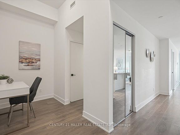 Experience modern condo living in this updated 1-bedroom + den unit at Oak & Co. Condominiums, located in the heart of Oakville's Uptown Core. This bright, open-concept layout features laminate flooring throughout, a sleek white kitchen with built-in stainless-steel appliances, stylish backsplash, and a centre island with breakfast bar. The spacious living and dining area offers direct access to your private balcony. The versatile den can function as a home office or guest room. This unit includes one underground parking space and a storage locker. Enjoy top-tier amenities: Chefs Table & Wine Tasting area, Fitness Centre, Outdoor Pool, Pilates Room, Theatre, Karaoke Room, Club Zone, Concierge, Party Room, Visitor Parking, EV Chargers, and more. Steps from Sheridan College, Oakville Trafalgar Hospital, parks, restaurants, schools, and Uptown Core Terminal, with easy access to 407, 403, and Oakville GO Station (less than 10 minutes away). Available for short- or long-term lease, this unit offers the perfect mix of comfort, convenience, and location.