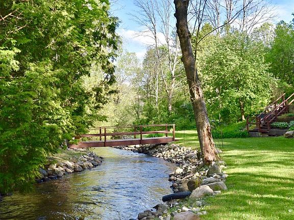 Catch this truly one-of-a-kind home before it gets away! Custom home built in 1962 with meticulous craftsmanship that incorporates natural elements of the outdoors. A rare opportunity to have private ownership of 5 acres on the Cedar Creek with your own fishing stream where often trout are spotted passing through, much to an angler's delight. The home has all new windows which is sure to enhance your experience of the bubbling sounds and sights of the stream. With over 2,700 finished square feet , the home has 4 bedrooms, 3 bathrooms, 2 fireplaces, 4 stall garage, and a 24 x 40 pole barn. The location offers much privacy and natural scenery, its hard to imagine that it is so close to Rockford schools and town. This beautiful property is a keeper for anyone who appreciates a great catch!