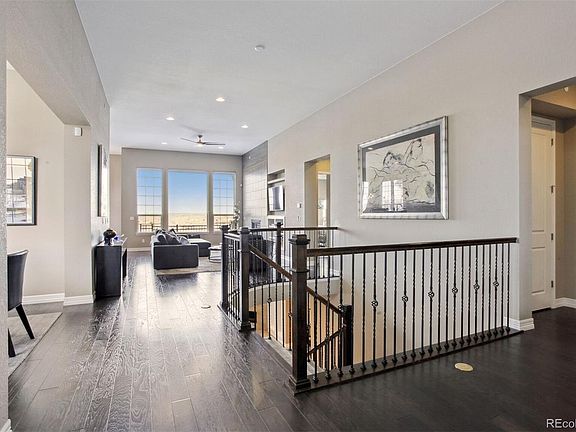 This absolutely stunning ranch is located in highly sought after subdivision of Country Club Highlands. Move right in & enjoy low maintenance living with HOA taking care of landscaping, lawn watering and snow removal. Enter through the gated front porch to a welcoming foyer with beautiful wrought iron railing opening to the finished lower level. This wide open floor plan offers a true chef's dream kitchen - beautiful cabinetry, granite on countertops and large walk-in pantry. The Kitchen features Kitchen Aid appliances, double oven, 5 burner gas cooktop with vent hood, extra large refrigerator, bar frig and huge breakfast bar island. The nook opens to upper deck to enjoy those wonderful Colorado days and evening over looking at Longs Peak to Pikes Peak. The Primary Suite is private and luxurious - dual vanities plus extra dressing vanity, walk in custom shower and a large custom built in closet. The laundry room is located just outside the Primary Suite and offers an upgraded washer and dryer. Main level is completed with a formal dining room, private office featuring beautiful hardwood floors and ensuite bedroom with its own private bath and an addition 1/2 bath for guests. The walkout lower level is an entertainment dream - pull up a seat at the amazing custom bar to enjoy food and drinks. while enjoying the custom builtin fireplace. There is an additional bedrooms, a bathroom and as well as a second office. Short walk to miles of trails in Big Cry Creek Open Space. A coffee shop, fitness center and restaurants are just down the hill. Neighborhood features outdoor pool, tennis, pickleball courts and community events.