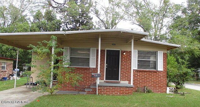 Nestled on a corner lot, this adorable concrete block bungalow invites you to experience the perfect blend of charm and modern comfort. Step inside and discover a well-designed layout where the kitchen seamlessly opens up to the dining room and living room, creating a spacious and inviting atmosphere. This home has had some thoughtful updates with newer vinyl plank flooring in communal areas and plush carpeting in the bedrooms. There is a Jack-n-Jill bath for the secondary bedrooms. A large laundry room adds convenience to your daily routine, while ample storage throughout the home provides practical solutions for keeping everything organized. New electric panel, roof 2013. AGENTS READ PRIVATE REMARKS/SHOWING INSTRUCTIONS . NO BLIND OFFERS.