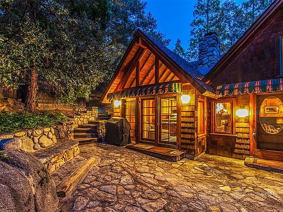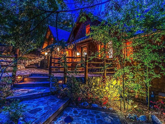 PRISTINE 1930'S LODGE. Located in a beautiful, serene setting in desirable Fern Valley, this vintage 1933 lodge style home has been beautifully maintained, preserving the original character and classic details such as peeled pine beams, pine paneling and trim, massive two-sided rock fireplace, ribbed plywood wainscot, wood floors and expansive walls of windows. Quality craftsmanship of a bygone era throughout, with open beam styling and dramatic gable end picture windows. The large kitchen has charming wood cabinets, natural edge cedar counters, stained glass accents, modern appliances, breakfast bar and adjoining family room area with French doors to private patio. There are 3 bedrooms including master bedroom with beamed ceiling and wood stove on rock hearth, 1.75 baths including master bath with glass wall tub enclosure, hand crafted vanities, propane forced air heater and laundry. Private decking, a rock patio with built-in seating and a separate hot tub area, afford multiple vantage points overlooking the beautiful grounds with Lily Rock views. One of eleven homes on approximately 40 acres in Fernwood Estates with access to common area and waterfall.