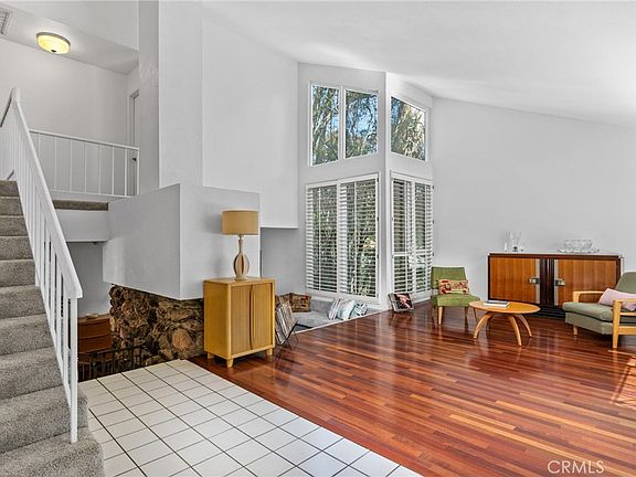 Awesome floor plan in the Woods just listed!! This beautiful three-bedroom home (that was originally a four bedroom and can be reverted) is now on the market for $1,150,000.00! Recently painted with brand new carpet in certain areas, this home also boasts beautiful wood floors, unique tiles, a conversation pit, and spectacular stone fireplace. The master bedroom is on the main floor for ease of access, with a full bathroom attached and slider out to a side patio. There is a grand living room and conversation pit with cathedral ceilings and picture windows that greet you at the front door. Downstairs is an adorable half bathroom, as well as a formal dining room, and upgraded kitchen that is open to the spacious family room. Newer dual pane windows are all along these rooms inviting plenty of sunshine into your home, as well as giving off views of the yard and beautiful eucalyptus trees that surround this community. Located at the end of a cul-de-sac, this huge lot has plenty of space and options for your vision! Another truly unique feature of this home, is extra storage space with its own exterior entrance which could be used for storage of holiday decor, hobbies, or even a wine cellar if you built it out properly!! Currently the sellers have chickens and the chicken coop is negotiable! Association amenities include access to the Lake Forest Beach and Tennis Club which boats a Jr. Olympic swimming pool, tennis courts, basketball courts, a sand volleyball court, fitness center and more! Come see this fabulous home!