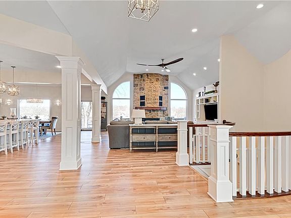 LISTED $450,000 LESS THAN RECENT APPRAISAL! Already inspected and move-in ready for immediate occupancy! Completely Remodeled lakefront home on 2+ acres! Circle drive leads to this stunning Reverse 1.5 story w/ inground heated saltwater POOL, huge deck & gazebo overlooking private lake. Impressive open floor plan w/ recent renovations that include gourmet Chef's Kitchen w/ TWO islands & SS appliances including double dishwashers. Large eat-in area adjoins the Kitchen that can accommodate a long dining table. Two main floor Offices that could also be used as formal Dining. Spacious Great Room w/ stone fireplace. Master Bedroom Suite w/ large walk-in closet & Sitting Room. Master Bathroom w/ dual vanities, tile flooring, Carrera marble shower and oversized tub complete with a picture window overlooking lake. Curved staircase leads to walkout LL w/ large Rec Room, 2nd Master Bedroom Suite w/ sitting area, 2 large additional Bedrooms w/ Jack and Jill Bath, Wet Bar & recently added 1/2 Bath. Staircase leads to attic space that could be finished into more Bedrooms or Rec Room. 3-car garage w/ extra attached storage/shop area. Over 1000+ sqft of composite decking wraps the exterior of the house with sweeping lake views. Outbuilding provides extra garage space for lawnmower, pool toys or utility vehicles. Recently renovated Saltwater Swimming Pool w/ slide is perfect on that hot summer day. Exterior freshly painted PLUS everything UPDATED! No need to drive to the Ozarks when you can live at the Lake every day!
