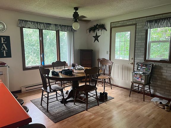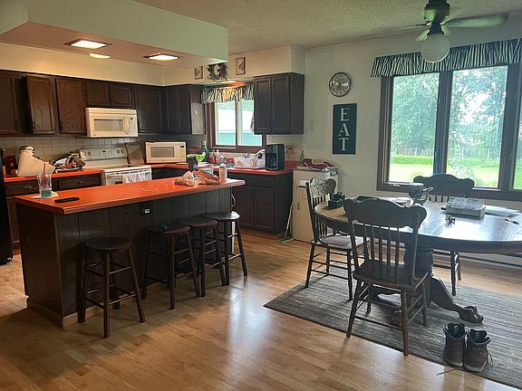 Great ranch style home situated on .9 acres. Eat-in kitchen has breakfast bar and lots of table space. 3 bedrooms on main floor with potential 4th bedroom in basement. Master bedroom has private bathroom with dual sinks and large walk in closet. Main floor laundry. Living room with woodburning fireplace. Partial new flooring on main floor. Partially finished basement offers a family room, den/potential 4th bedroom, and lots of storage. Attached 2 car garage and detached 36x24 heated workshop (just needs propane tank). Workshop has 220 as well as air compressor lines. Beautiful yard. House needs some work. Listed below appraised value. Sold as is.