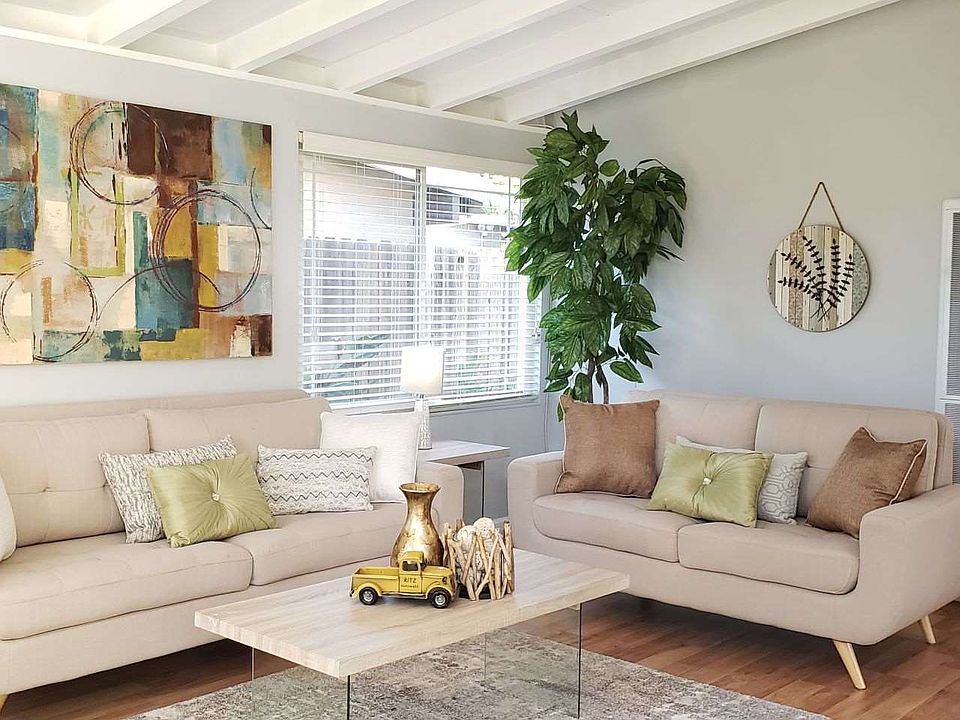 Imagine coming home to this gorgeous Mid-Century Modern home with open-beamed ceilings. The open style layout will ensure your life has plenty of free space and natural light. Newly designed kitchen features shaker style maple cabinets with self-closing doors, granite countertops with backsplash and new stainless steel gas range and dishwasher. On winter evenings, relax in front of the cozy fireplace after a rough day. New laminate flooring has been recently installed throughout the whole house except for bathrooms, which have imported Italian tile. Fresh coat of paint inside and out. Dual pane windows with custom 2" faux wood blinds. Two full bathrooms have been renovated including new vanities, fixtures, lights, toilets, tub, shower walls plus shower door. Walk outside from the dining area to a large patio for BBQ dinners or your morning coffee. This home is centrally located near Chabot College, Southland Mall, San Mateo Bridge (92) & HWY 880. Come quickly to see for yourself!