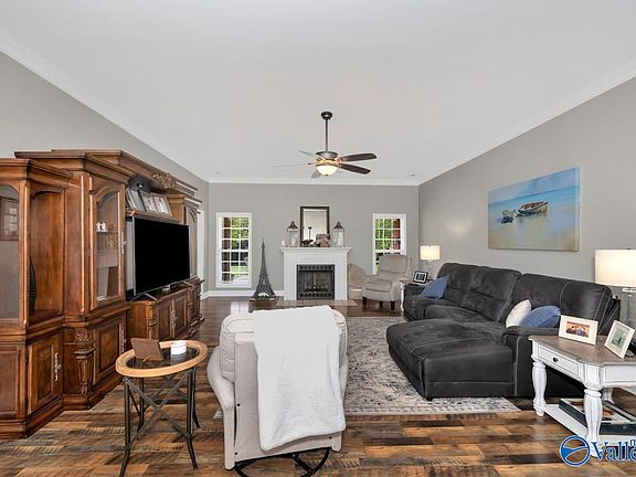 - Features: 10’ + Ceiling, Ceiling Fan(s), Crown Molding, Fireplace, Laminate Floor