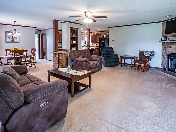 If you have been looking for an escape from living in the city, this one is for you! Stunning 3 bedroom, 2 bath move-in ready home sitting on just over 1.5 acres. Approaching the home on the gravel drive, you will be delighted with the well cared for landscaping and mature trees that provide plenty of shade. Entering the home you will be greeted by a very large living area that is open to the kitchen and dining space. This area will blow you away with its stone gas fireplace, kitchen work island/eat-at bar, beautiful cabinetry, and large dining space! Just off the living area you will find a large master suite that includes a jetted tub, standing shower, double vanity, and huge walk-in closet. The opposite side of the home features two great sized bedrooms and shared bath. Screened porch recently added, providing the perfect spot to sit and appreciate this country setting!