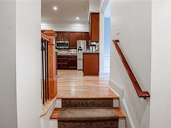 Beautiful brownstone just a short walk from The Battery and Truist Park, offering an Atlanta address with Cobb County taxes. This spacious home boasts 10-foot ceilings, an open layout, and the largest floor plan in the community—ideal for relaxation and entertaining. Featuring three bedrooms, each with an en-suite bath and walk-in closet, plus a gourmet kitchen with a Miele dishwasher, Blanco sink, and hardwood floors, this home is designed for comfort and style. The main level includes a formal dining room and private deck, while the master suite offers a spa-like bath with a garden tub, separate shower, and large walk-in closet. Set in a gated community with a pool, dog park, green spaces, and nearby trails, the home provides easy access to I-285 and I-75. Recent updates include newer HVAC units and roof, with HOA coverage for deck maintenance, trash, roof, termite control, and grounds upkeep. Enjoy walkable access to The Battery Atlanta without crossing a street—make this exceptional brownstone your new home. **Update: Price reduced to allow the new owner to choose their own carpet and paint colors, adding a personal touch to make this home truly their own.**