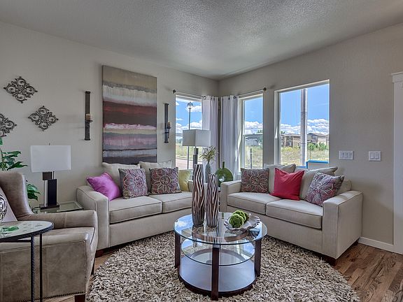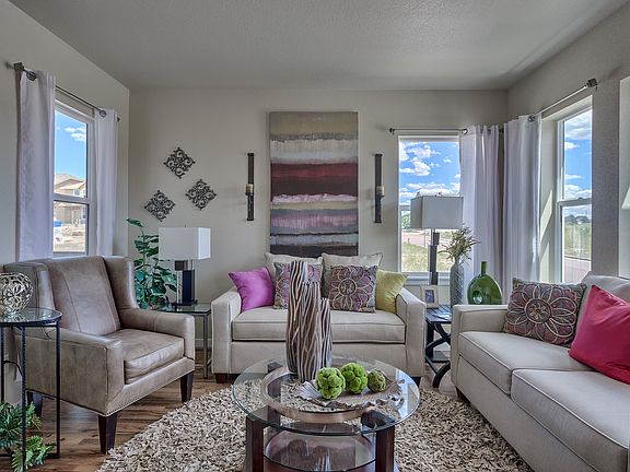 Call builder agent directly at 719-963-7983 or come to listing address during business hours for showing. Home is CreekStone Homes' current model in Spring Creek. **Home is for sale as a builder Lease Back for negotiable time (call for details). Great investment opportunity or the perfect place to live! Wonderful location to purchase for rental property with easy return on investment, or living in a traditional neighborhood development. Conveniently located in Spring Creek just minutes from military bases, downtown, shopping dining, and schools! Trendy floor plan offers something totally new to Colorado Springs, with exciting angles, open floor plan, outdoor living space, lots of windows for bright friendly feel, central AC, and oversized 2 car garage. Amazing features include granite slab kitchen countertops, 42" cabinets with crown molding, Bosch stainless appliances, hardwood floors throughout entire main level, beautiful dining area, spacious master with huge walk in closet, convenient upstairs laundry, gas log fireplace in living room, recessed TV nook, and slider that walks out to low maintenance composite deck. Full unfinished basement has space to add at least 1 bedroom, full bath (roughed in), and family/rec room. Come by for a tour today! Call 719-963-7983 or come by for showing. Hours: Sun & Mon 12-6, Tu-Sat 10-6. Can be shown after hours by appointment.