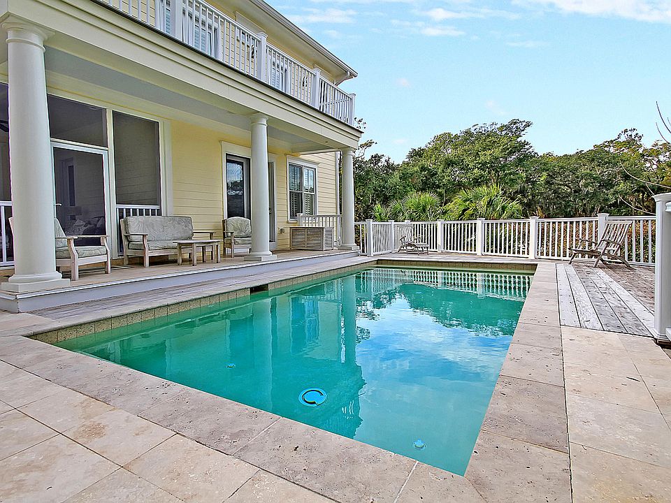Beautiful Lowcountry home located on 6th green of The Ocean Winds Golf Course that meanders under ancient oaks. Location is short bicycle ride to all beach access points to witness stunning sunrises and crystal clear starry nights.The home is uniquely built into an early dune line affording privacy in a very natural setting. This is quite evident around back where a sparkling pool and outdoor living area look out at glimpses of island golfing. This home on the inside welcomes with hardwood floors and an open floor plan that includes an extra large kitchen made for gatherings of friends and family alike. As you leave the open kitchen there's dining and a very inviting great room where gatherings are welcome or just an intimate evening at home for just the two of you. There's even a billiard room with wet bar that's sure to be a place of memorable conversations and great fun. Upstairs the hardwood floors continue with three large guest bedrooms and a very spacious guest suite above the garage that includes a refreshment area with refrigerator. The master suite has outdoor access with views to the pool below, a massive walk-in closet, and a master bathroom with split vanities, a jetted tub, and a roomy steam shower. That makes for five spacious bedrooms with ensuite baths including a master bath that welcomes at any time of day.This home has substantial molding throughout and other details that would welcome a very discerning buyer or folks that are looking for the ideal Seabrook Island Beach home getaway. Once you walk through you'll know it. All the HVAC units have been replaced within the last 1-3 years, and there are 2 Rinnai tankless hot water heaters. This home boast a strong rental history and is being sold furnished with a few exceptions. Contribution to capital within P.U.D. upon the initial sale and resale is 1/2 of 1% of the sale price. Purchase also requires a membership to the a Club at Seabrook.