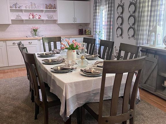 Move in Ready! 3 bedroom 2 full bath. Gorgeous updated kitchen with TONS of cabinet space, stainless steel appliances, and added additional cabinets with buffet space for prepartion or serving. Side entrance door with mud room area. Large dinning room with added storage and counter top space and an abundance of window light. Both bathrooms have been updated with new vanities and fixtures and are beautiful. MASSIVE family room with vaulted ceilings. You will not want to miss the wrap around porch that extends nearly 3 sides of the home. The views are breathtaking and peaceful. In addition, this home features an unfinished basement space with interior an exterior entrance, a large storage shed with garage door, a chicken coop and run in shed. The pasture is fully fenced and ready to go. HVAC, water heater, appliances and electic panel are all around 5 years. All of this on close to 1 1/2 acres!