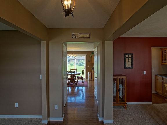 Move in condition 4 bedroom, 2 1/2 bath, 2,034 square foot family home with a full, unfinished, daylight lower level and 2 car attached garage on an irrigated corner lot in the convenient location of Harrison Ridge Subdivision. Open floor plan on the main level with a foyer entrance opening into the family room and den. Family room opens into the large fully appointed kitchen with custom kitchen cabinets, hard surface island counter tops, stainless steel appliances and plenty of storage. Kitchen opens into dining room and living room with plenty of natural light. 1/2 bathroom, sitting area and garage entry complete the main Level. 3 generous sized bedrooms, large master bedroom. 2 full bathrooms, laundry room, and landing complete the upper level. Full unfinished daylight basement ready to be finished if needed or used for storage. Existing theater system complete with screen and all the equipment included. Newer Kinetico R/O and water softener. New paint-ready to move into. Proposed improvements to Husky Trail include adding a sidewalk connecting to existing neighborhood sidewalk leading to Harrison Elementary School and Martin's grocery store affecting a small amount of the west side of the berm.