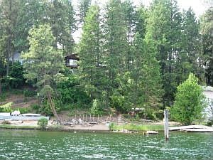 Coeur d'Alene Lake, Mica Bay, 104' frontage, 2 bdrm, 2 bath, 1496 sq. ft., dock/boat slip, fireplace, sandy beach, open deck, great views.