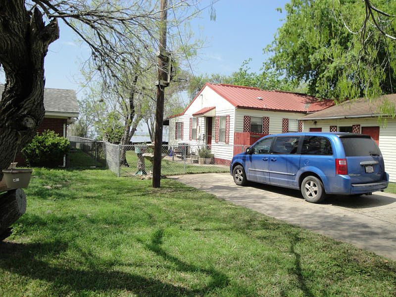 Lakeshore Gardens prime waterfront property near I37 and Mathis, just minutes from shopping. Main housse has 2 bedrooms and bath with laundry room and a nice 250 sq.ft. covered concrete porch overlooking the lake. A guest bedroom with large walkin closet and seperate window ac is on the backside of the house attached to the garage workshop.Partly fenced yard for pet or small children. Concrete bulkhead with launch and extra long pier. Lots of pretty large shade trees and well kept yard. You will love the taste of the well water and has a store room for water tank and equipment. Double wide concrete driveway and community boat launch is just around the corner. This will make a great weekend or retirement home. Just minutes to Mathis and I-37.