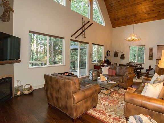 Absolutely immaculate and turn-key. Newer mountain home with warm, rustic upgrades wrapped in Pottery Barn decor from floor to ceiling. Charming wrap around deck. Level, covered entry with no steps. MASTER BEDROOM on main floor. Upstairs hosts a spacious loft with picturesque windows to enjoy the winter snowfall with 2 additional bedrooms, full bath and "secret room". OVERSIZED ATTACHED GARAGE. RV carport. No rear neighbors. Partial views. Very tranquil and serene setting. This is a 10! Don't miss the storage space below the house!