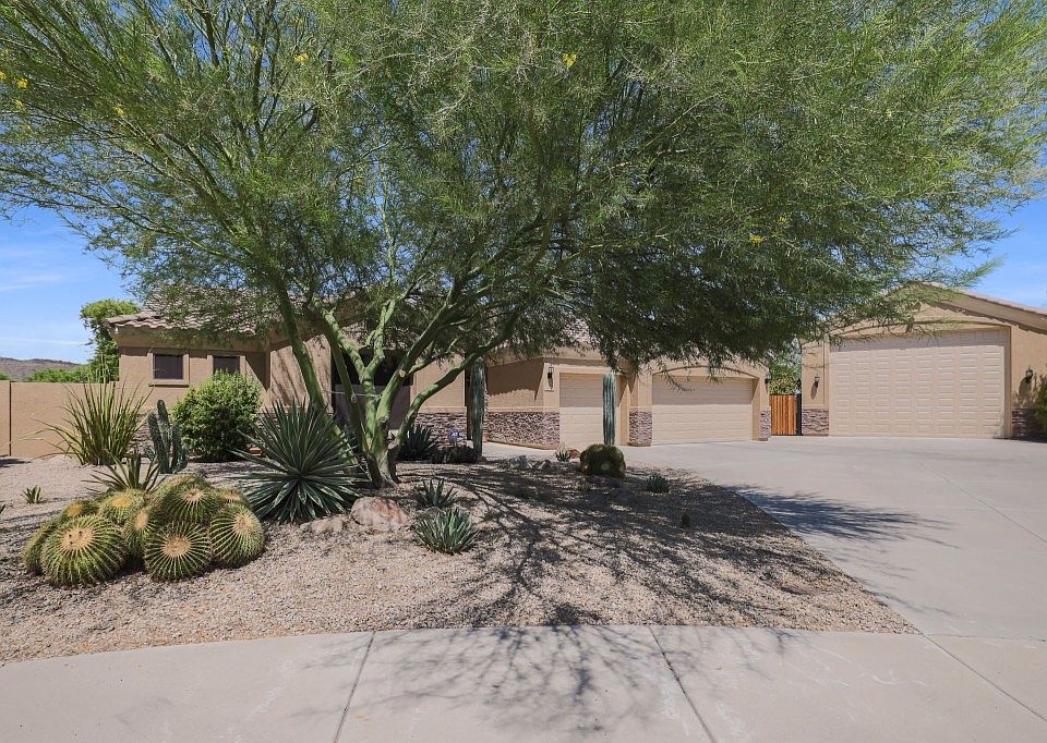 WANT IT ALL? HARD TO FIND - Pristine single level home tastefully updated with 3 Car+RV Garage on an AMAZING Lot! The enchanting curb appeal leads to welcoming entry into this stunning home filled with light & open living spaces. Light Travertine stone throughout - NO carpet. Custom kitchen has SUPER Island, gorgeous CUSTOM Cabinetry, HIGH End Appliances incl. induction cooktop and Granite Counters. Casual living area w/ fireplace OPEN TO KITCHEN leads to private RESORT backyard w/Resurfaced Pool and Spa, perfect for entertaining! Split Master Bedroom with separate exit, 2.5 baths - ALL UPDATED.... There is SO MUCH to discover in this home. Recently painted inside & out. ROOF underlayment replaced 2015. Detached RV Garage 25' x 44' w/built in cabinets, extra electrical & insulated Doors.