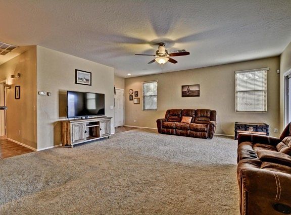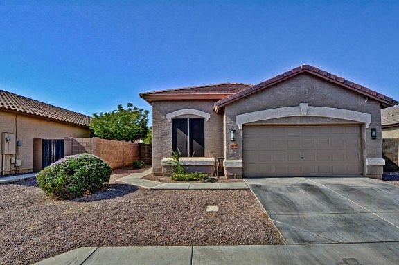 Great 4 bedroom 2 bath home with a pool! Open layout. Eat-in gourmet kitchen with granite counters, backsplash, stainless steel appliances, and island with breakfast bar. Spacious family room. Split bedroom floorplan. Inside laundry. Master bedroom suite has 2 sinks, separate tub and shower, and walk-in closet. Terrific backyard with pebble tec pool with waterfall, covered patio, and synthetic grass. Leased solar; solar heated pool. Nearby community parks and playgrounds. Don't miss out on this one!