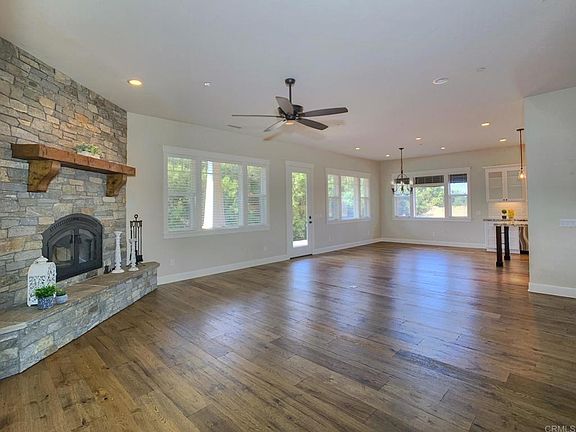 This is it! Prepare to be Wowed! This custom built craftsman style home alongside a seasonal stream is sure to please. This spectacular 4 br, 3 ba home with it’s 2571 sq ft, features an open floor plan, stunning kitchen with granite counters, subway tile, walk-in pantry, and enormous island to make entertaining a breeze. The main living space features a cozy fireplace for those cool evenings. Downstairs, is an inviting sitting room/bedroom with access to a full bath with walk-in shower. Upstairs, are 3 additional bedrooms, den with barn wood accent wall, and access to an enormous deck overlooking the majestic oaks and seasonal stream. The spacious primary suite features an ensuite bath with soaking tub, walk-in shower, dual sinks, and walk-in closet. Quality dual paned windows throughout, ensures the entire home is bathed in natural light. Other high end features include 10’ interior doors, beautiful wood flooring, enormous 3 car garage with oversized garage doors, rocking chair front porch, interior laundry with tons of storage, tankless water heater, RV parking, in ground sprinklers, and generous lot size, pre set up to add a pool and solar if desired. This home is located in the prestigious San Diego Country Estates. The first class amenities include; world class golf course, clubhouse and restaurants, 2 community pools, 2 equestrian centers, multiple parks throughout, pickle ball and tennis courts, miles of hiking trails and much more! Come fall in love and make this your “Home Sweet Home” today!