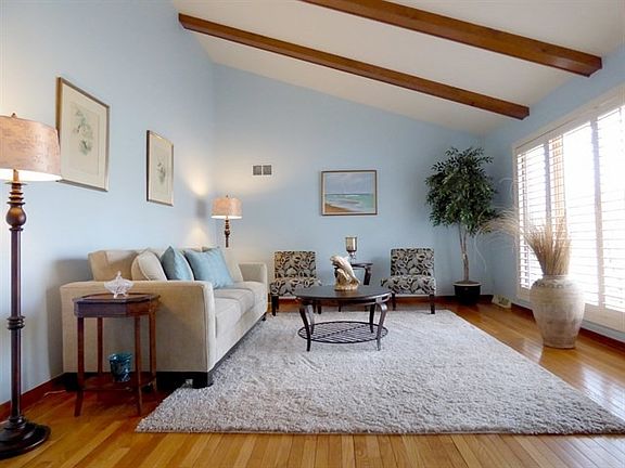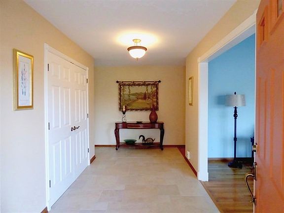 Enjoy sunsets over the pond in this hillside ranch situated in a park like setting on a quiet cul-de-sac. Top notch eat in kitchen w/sliders to a brick paver patio. A lovely screened in porch overlooks the sloping yard to the pond & beyond to the fen. The walk out basement boasts a wet bar, rec room & an exercise room/office w/door.New Plantation shutters & blinds thru-out most, new carpet & new paint inside & out!