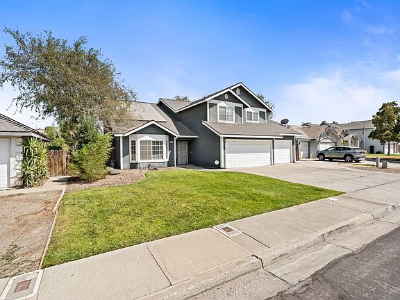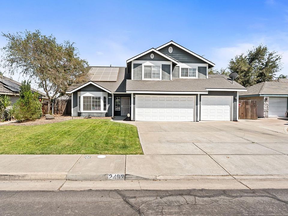 This Hanford beauty is more than just a house - it's the kind of home that welcomes you in and makes you want to stay awhile. With 4 bedrooms, 2.5 bathrooms, and over 2,400 SqFt of space, there's room for everyone to spread out and feel at ease. The family room greets you with high ceilings and sunlit windows, while the kitchen brings people together with stainless steel appliances, generous counter space, and a breakfast bar that flows into the dining room and a cozy second living area with a brick fireplace. The primary suite is a true retreat, featuring his-and-her sinks and dual walk-in closets. Step outside to a covered patio made for lazy afternoons and lively gatherings, plus a sparkling pool and spacious backyard ready for summer fun. With owned solar, 3-car garage, and easy access to shopping, dining, and freeways, this home is the perfect blend of comfort and convenience. Come see it for yourself - schedule your showing today!