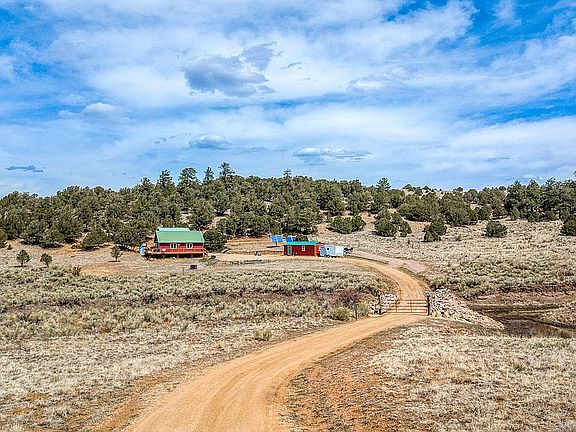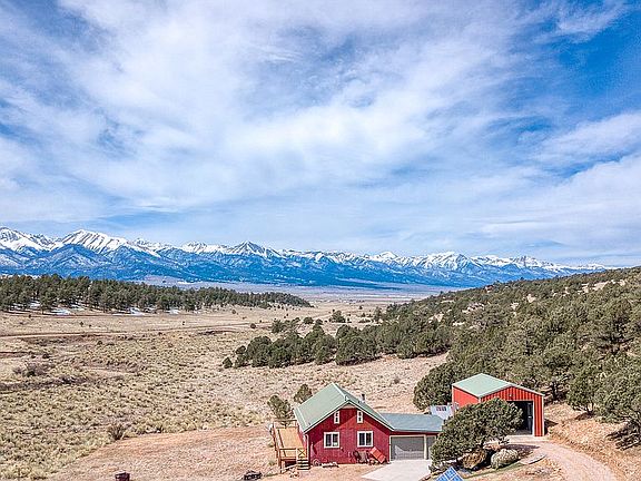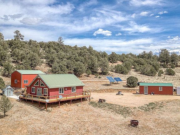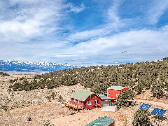 You know what I love about real estate? Writing descriptions for cabins like this! It's custom, it's crafted, and the Seller has done nothing but improve this property since purchase. A new culvert, dirt work and driveway were installed upon purchase. A key punch coded entry gate greets every arrival, and the picturesque setting of the cabin is sure to please. The owner expanded the solar system to create a 24 VOLT system with enhanced collection, and every garage comes equipped with its own air compressor and hose reel, 110. That's a 10x30 detached garage w/power, a 20x25 steel constructed garage w/power, and an attached 480 sq. ft. garage. All garages have concrete floors. As you walk up the steps to head inside, you'll enjoy the views of the Sangre de Cristos to the west. We've got glorious sunsets here, and sunrises that paint the mountains pink. Inside the cabin, you'll find an open concept living, kitchen/dining combo with master and full bath on the main level. Laundry is off the custom, artistic kitchen with hardwood floors...and upstairs, an open loft bedroom with half bath. I hit the highlights, but you'll want to see EVERYTHING! Bring the toys & call today!